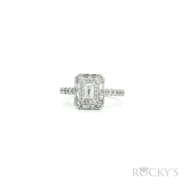 14kt White Gold Diamond Engagement Ring with 1.00CT Mix Shapes G/H Color & SI Clarity Diamonds