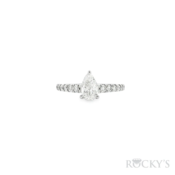 14 Karat White Gold Diamond Engagement Ring Size 7 1:0.71CT Pear Shape H Color SI2 Clarity Center Diamond and 0.27TWT Round Cut G/H Color SI Clarity Side Diamonds