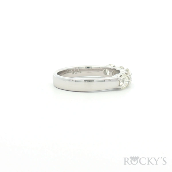 White Platinum Wedding Band Size 7.5 With 5 Stones and 1.53Tw Round Gh Si Diamonds