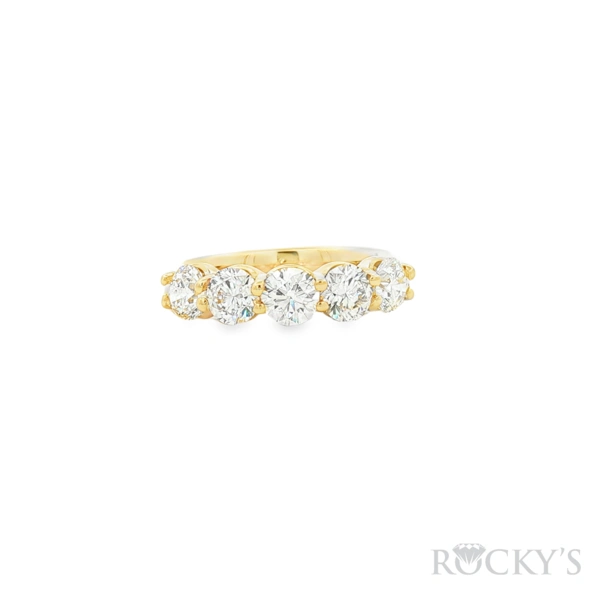 14 Karat Yellow Gold Ladies Diamond Wedding Band Size 6.75 with 5 Stones: 1.75TWT Round Cut G/H Color SI Clarity Diamonds