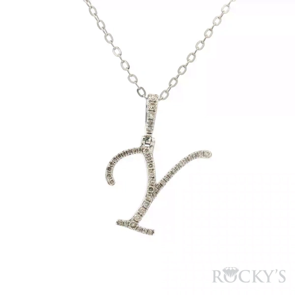 White 14 Karat Pendant With 0.40Tw Round G/H SI Diamond Initial Pendent Letter "Y"
