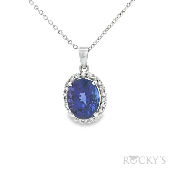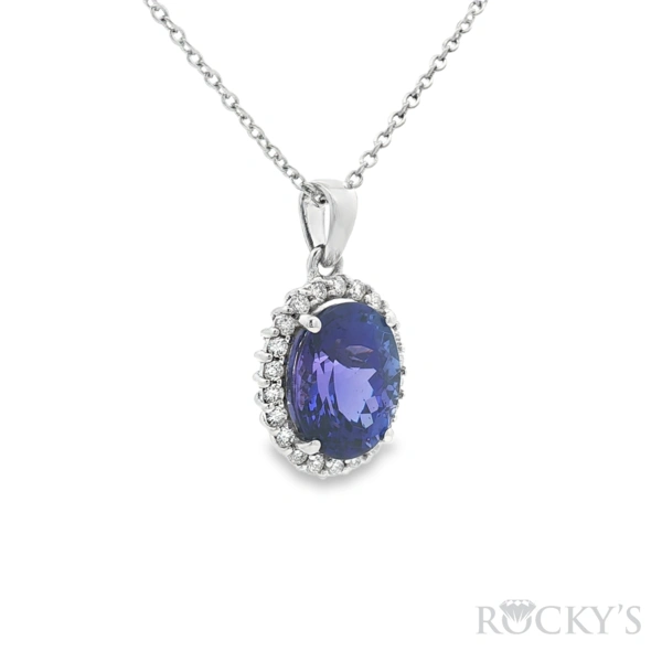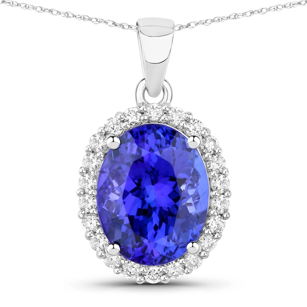 14kt White Gold Pendant with 4.21ctw Tanzanite Oval 11.10x8.80mm - 1Pc + 0.31ctw Diamond White Round 1.50mm - 22Pcs ( I1/H-I )