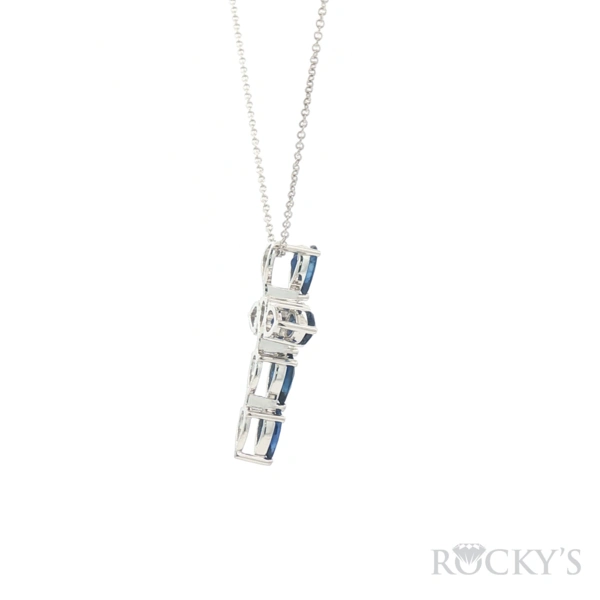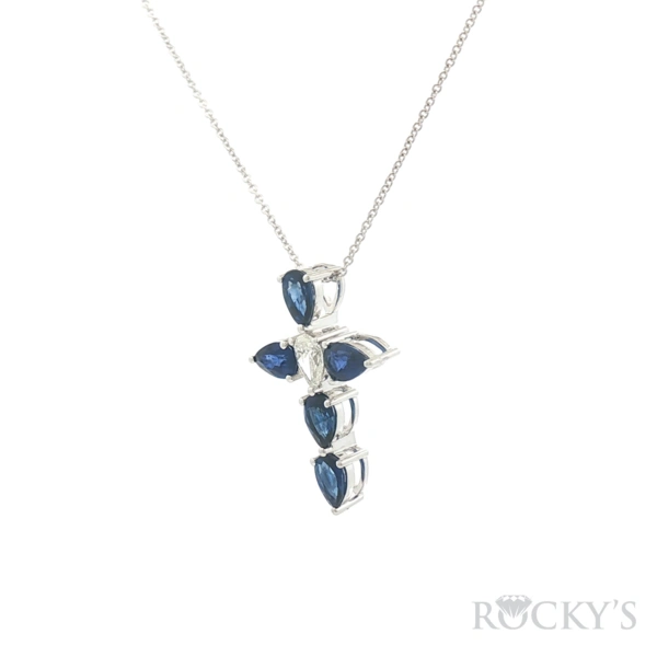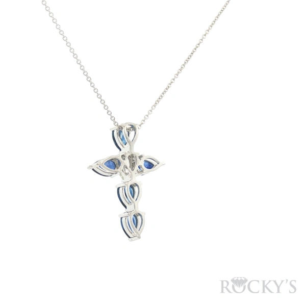 14 Karat White Gold Sapphire Cross Necklace With 2.37Tw Pear Shape Blue Sapphires & 0.31Tw Pear Shape G/H Color & SI Clarity Diamond (Chain Included)