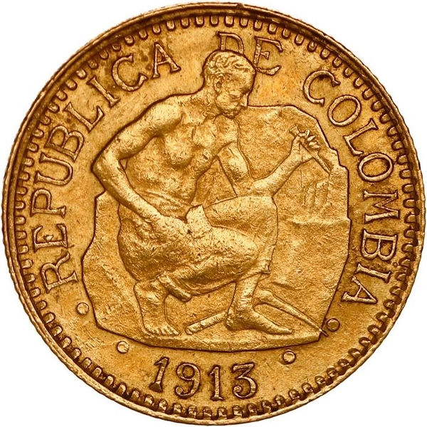 Yellow Gold COLOMBIA, MedellÃn, gold 2½ pesos, 1913, ex-JEAS. Antique Pendant - COLOMBIA, MedellÃn, gold 2½ pesos, 1913, ex-JEAS. Restrepo-450.1; KM-194. 3.99 grams. AU, fairly lustrous, scarce one-year type with a mintage of 18,000 coins (AGW 0.1178 oz).