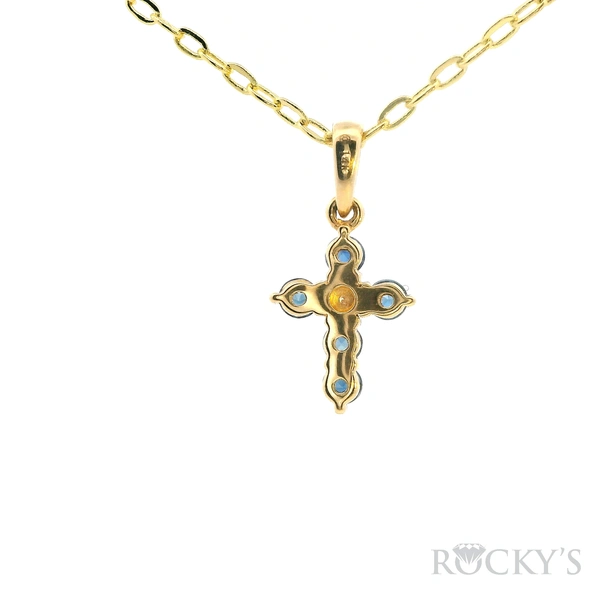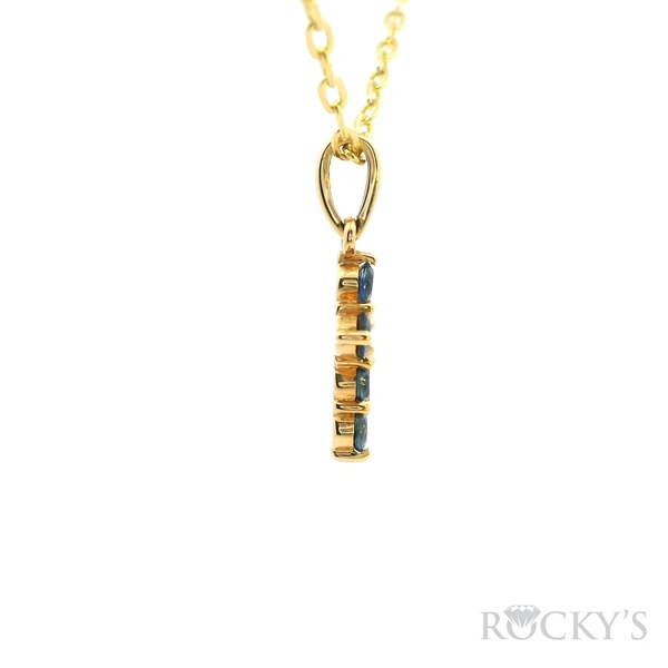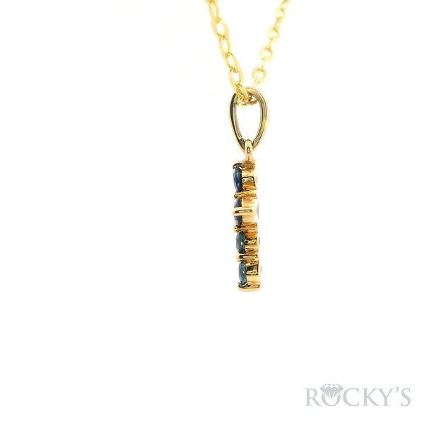 Yellow 14k Petite Collection Pendant with 0.31Tw Round Shape Sapphire and 0. 01Tw Round Shape Diamond