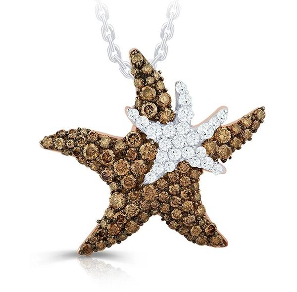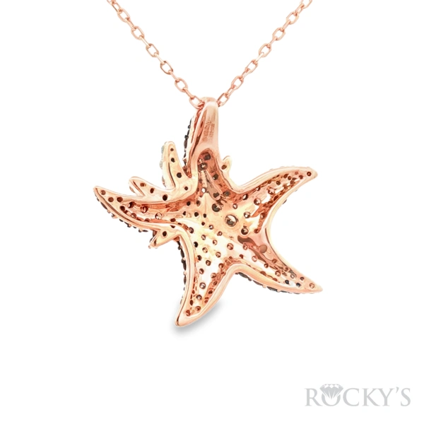 Rose 14k Sealife Collection Pendant with 1.67Tw Round Shape Brown/ Champagne Diamond and 0.38Tw Round Shape Diamond