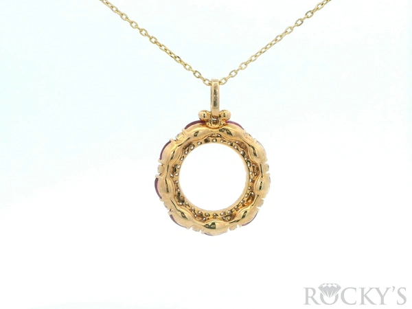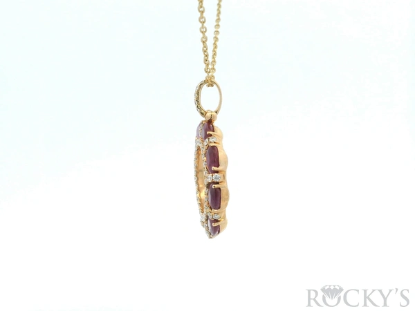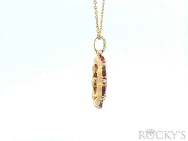 14 Karat Yellow Gold Ruby Pendant With 6.26Twt Oval Cut Red Rubies And 0.75Twt Round Cut G/H Color & SI Clarity Diamonds (Chain Excluded)