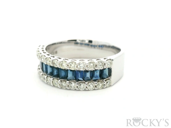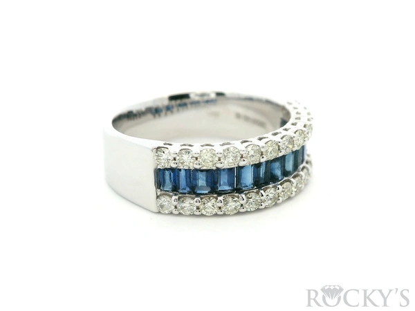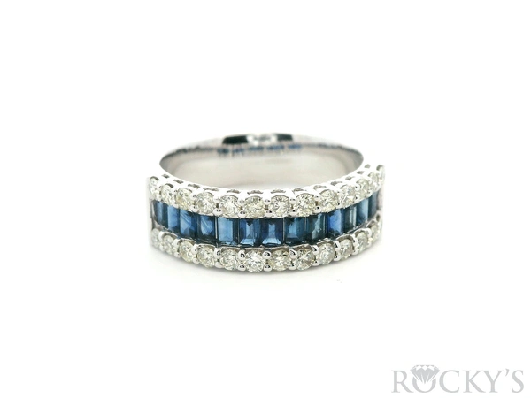 14 Karat White Gold Multi Sapphire Ring, Size 7.5, With 0.98Twt Baguette Cut Blue Sapphires And 0.63Twt Round Cut G/H Color & SI Clarity Diamonds