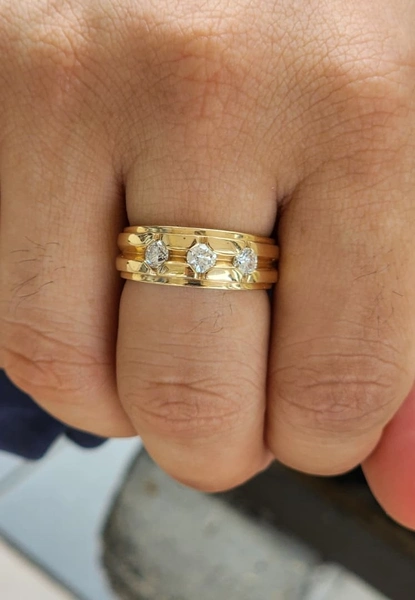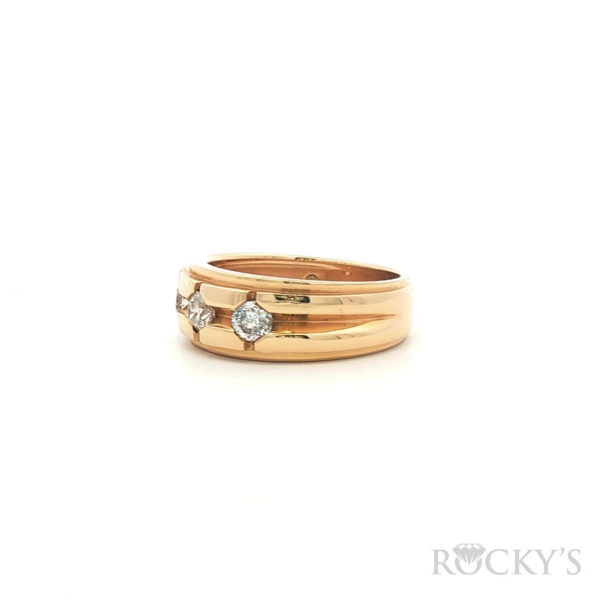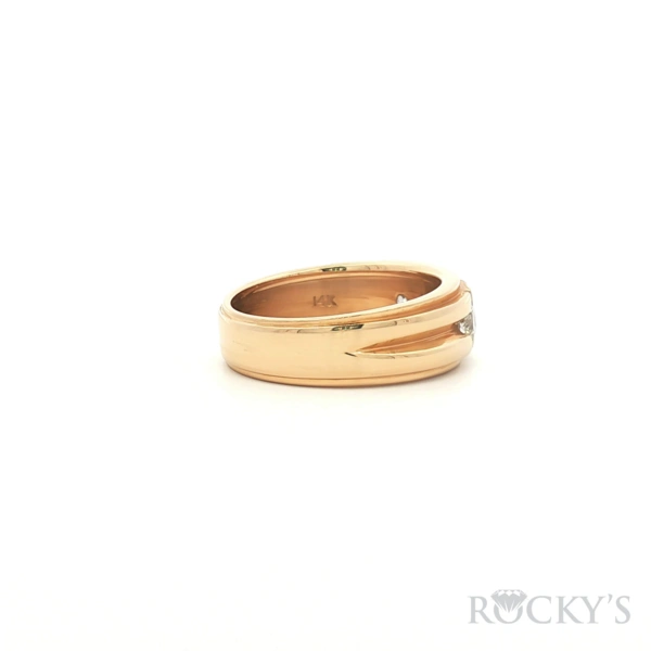 Yellow 14k Mens Ring with 0.84Tw Round Shape Diamond