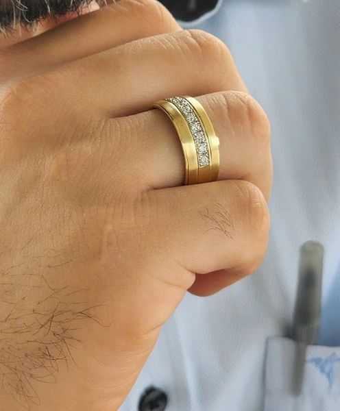 Yellow 14k Mens Ring with 0.46Tw Round Shape Diamond
