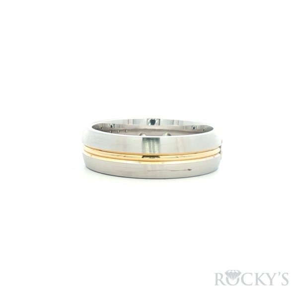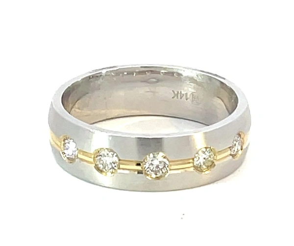 Two Tone 14k Mens Ring with 0.45Tw Round Shape Diamond