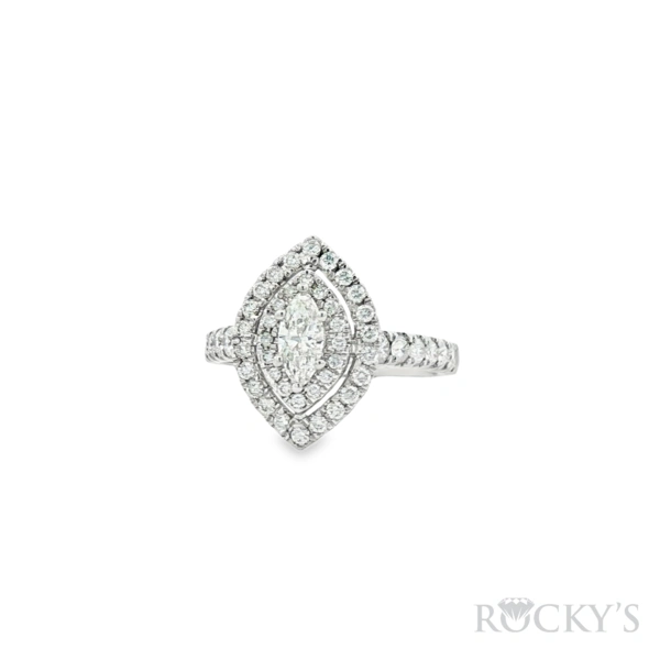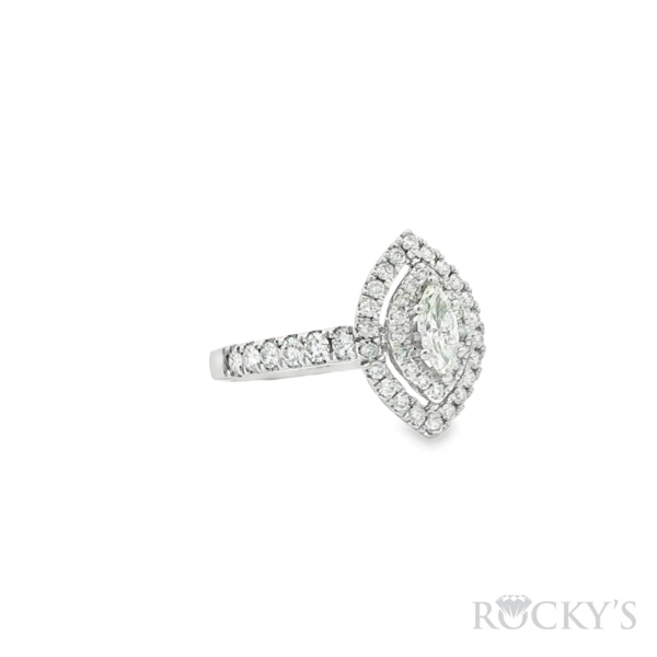 14k white gold Diamond Ring with 0.31Tw Marquise Cut Diamond and 0.69Tw Round Shape Diamond, Small Card cert # EGLJ2106190059, SI Clarity & G-I Color