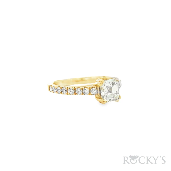 14 Karat Yellow Gold Diamond Engagement Ring Size 7 with 1.15CT Princess Cut Center white Diamond & 0.50CT Round Cut White Side Diamonds all SI Clarity & G/H Color.