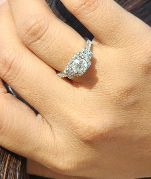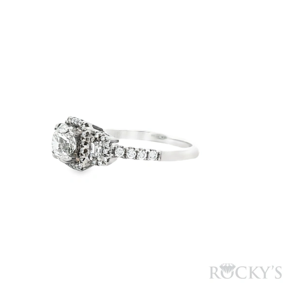 14 Karat White Gold Diamond Engagement Ring Size 6 with 1.04CT Round Cut F Color & I1 Clarity Center Diamond and 0.45TWT Mix Shapes(0.18 Baguette+0.27Round) G/H Color & SI Clarity Side Diamonds