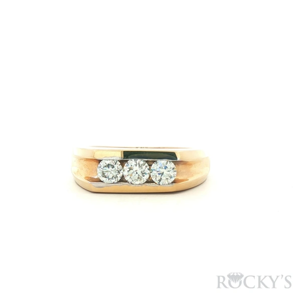 Yellow 14k Mens Ring with 0.98Tw Round Shape Diamond