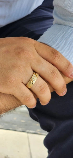 Yellow 14K Men's Diamond Wedding Band Size 10 With 0.25Ct Round Diamond - Mens Ring
