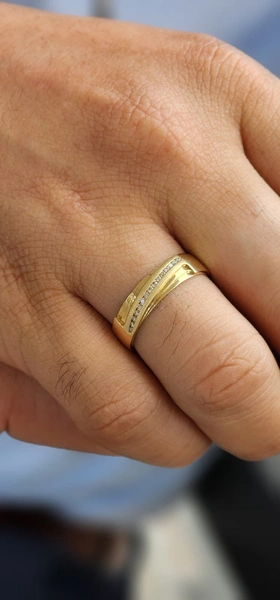 Yellow 14K Men's Diamond Wedding Band Size 10 With = 0.10Tw Round G/H SI Diamonds