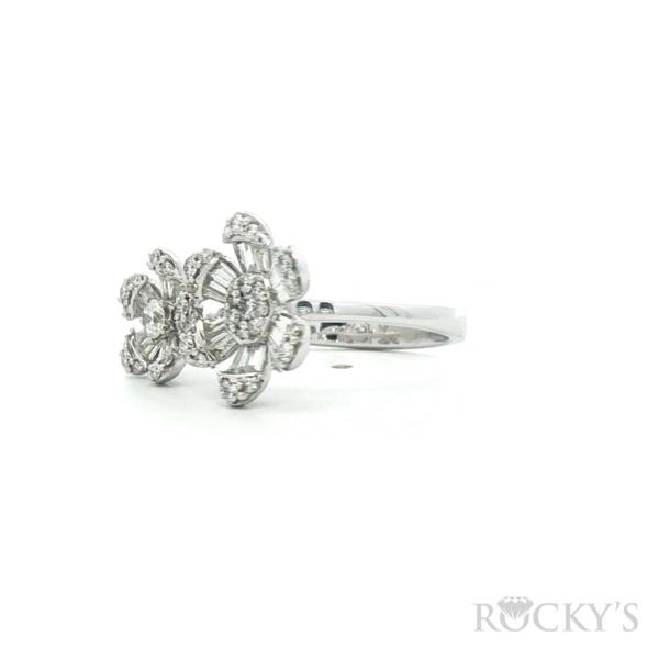 White 14k Diamond Ring with 0.47Tw Round Shape Diamond and 0.44Tw Trapeze Sh ape Diamonds Diamond