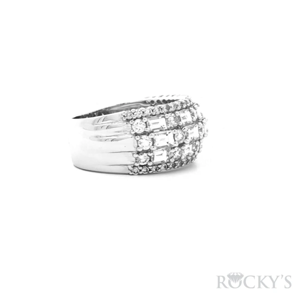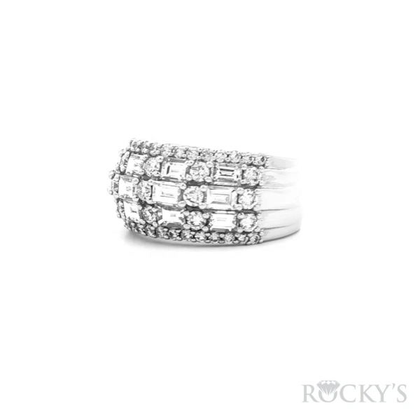 White 14k Diamond Ring with 1.97Tw Baguette Diamond and 1.20Tw Round Shape D iamond