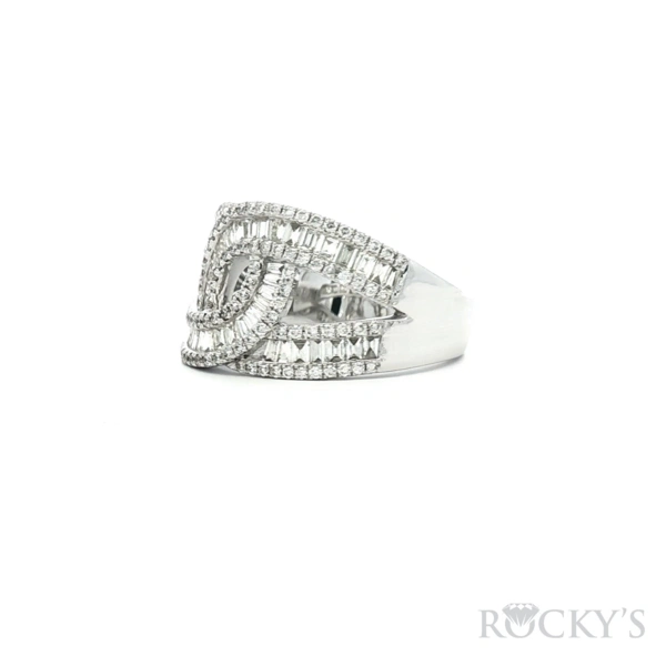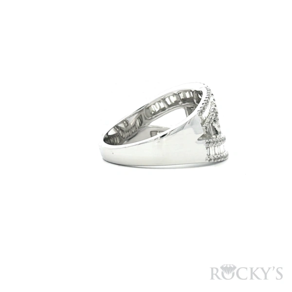 White 14k Diamond Ring with 0.38Tw Baguette Diamond and 0.43Tw Round Shape D iamond