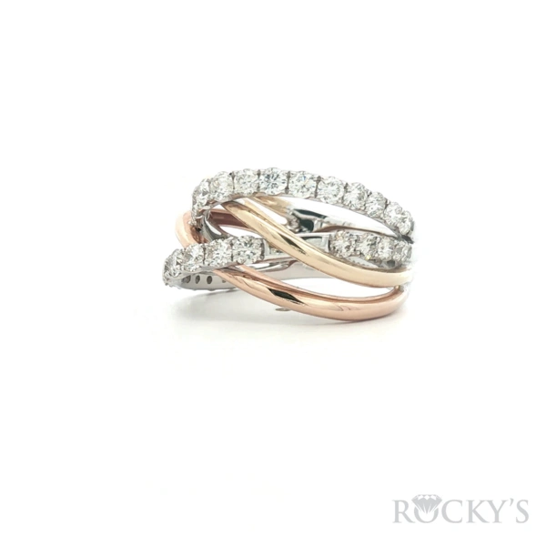 3 Tone 14k Diamond Ring with 1.66Tw Round Shape Diamond : Trinity Collection