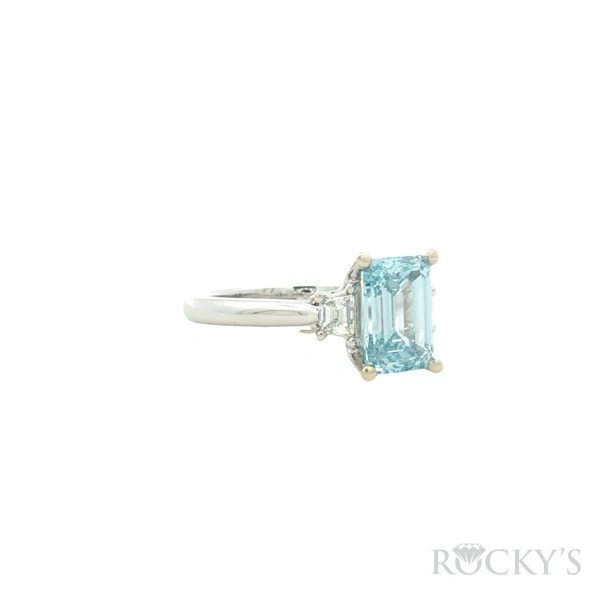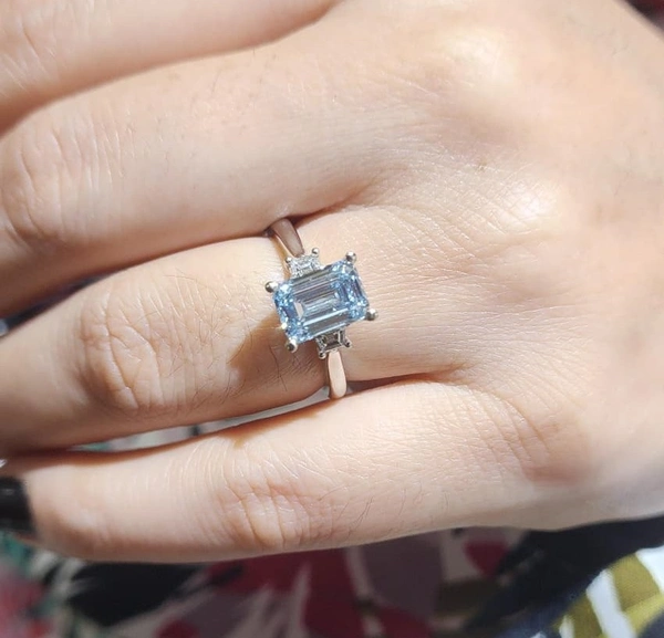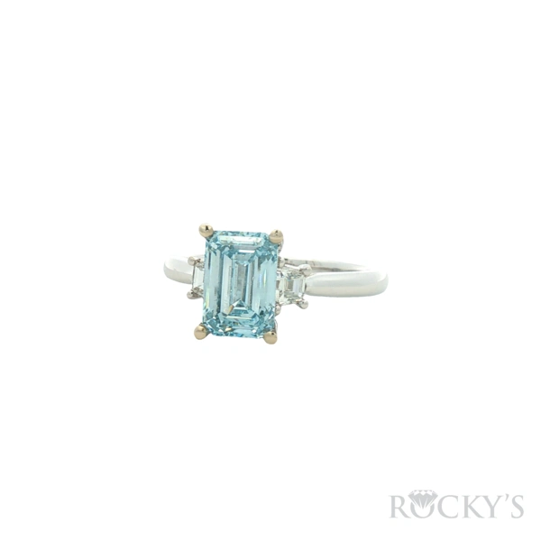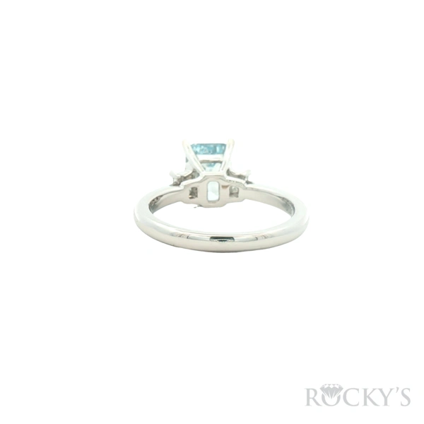 14 Karat White Gold Lab Grown Diamond Engagement Rings Size 6.25 With 2.00Tw Emerald Cut Blue VS1 Clarity Lab Diamond And 0.40Ct Natural Princess cut Diamonds