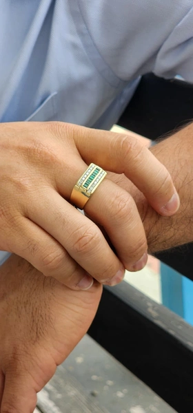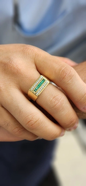 Yellow Platinum & 14Kt Gold Fashion Ring Size 10.5 With 0.56Tw Baguette Emeralds And 0.408Tw Round Gh Color and Si Clarity Diamonds