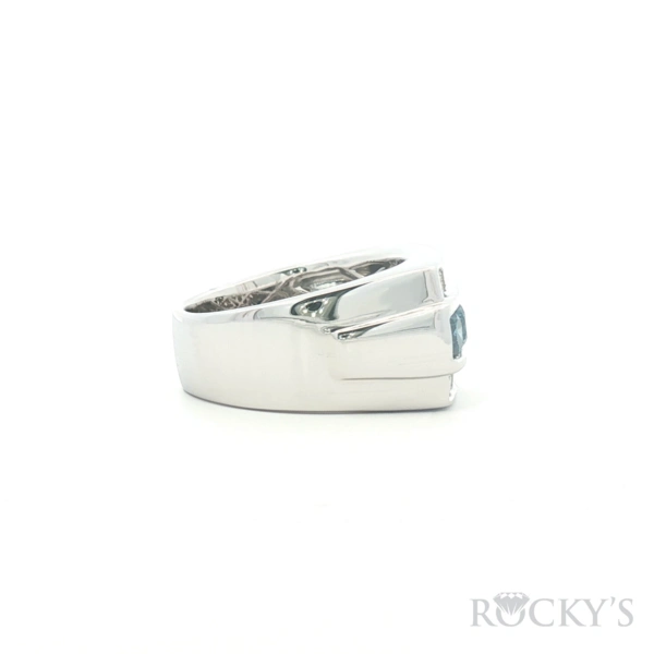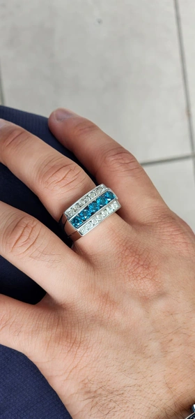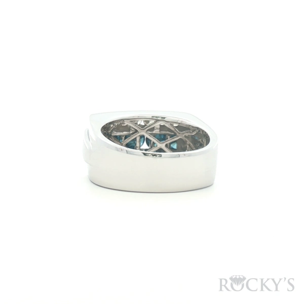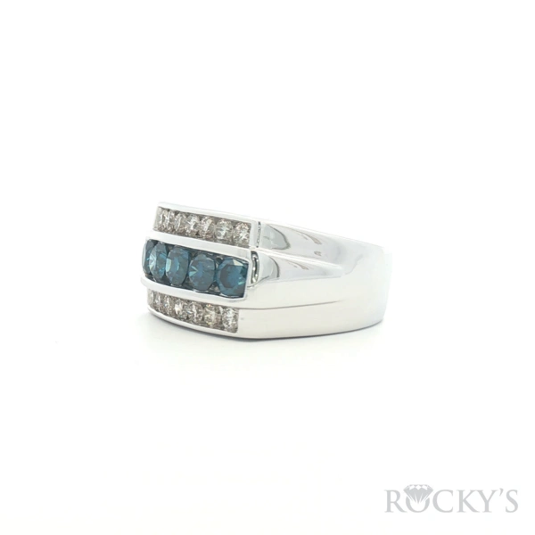 White 14 Karat Color Diamond Ring Size 10.5 With 14 Stone of 1.06Tw Round Gh Color and Si Clarity White Diamonds And 5 Stone of 1.87Tw Round Blue Diamonds - Mens Blue Diamond Ring