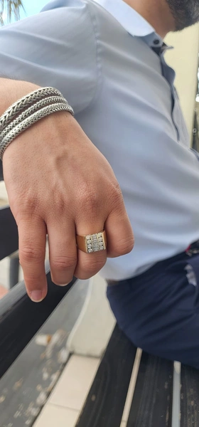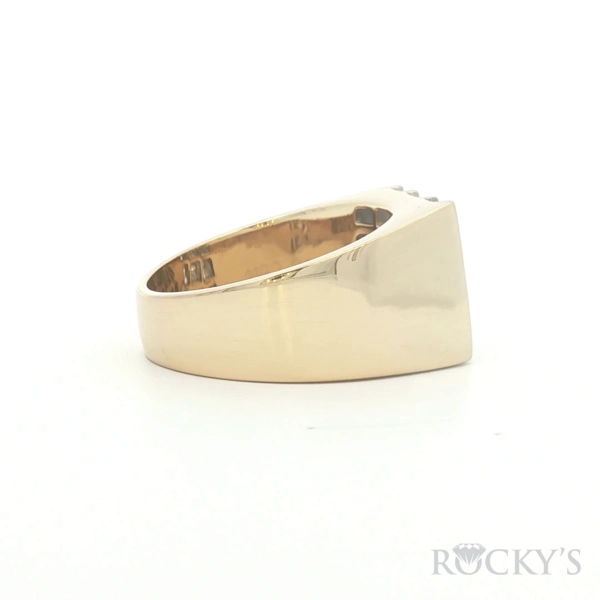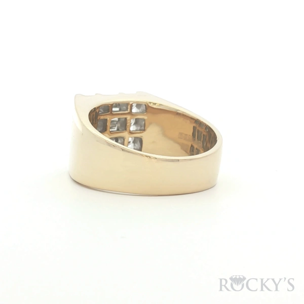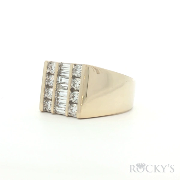 Yellow 14 Karat Men's Diamond Wedding Band Size 10.50 With 8 Stone of 0.93Tw Round Gh Color and Si Clarity of Diamonds And 0.58Tw Baguette Diamonds - Mens Ring
