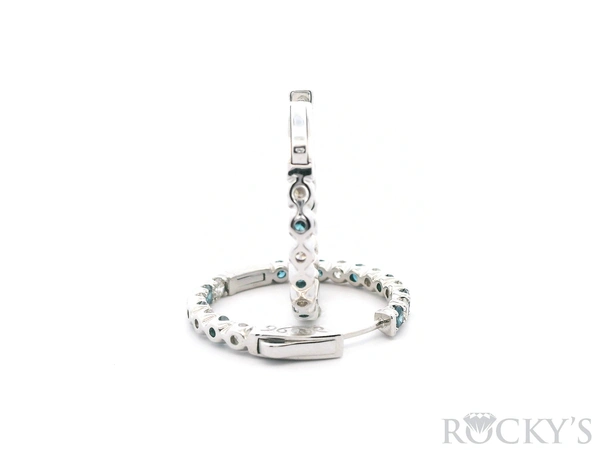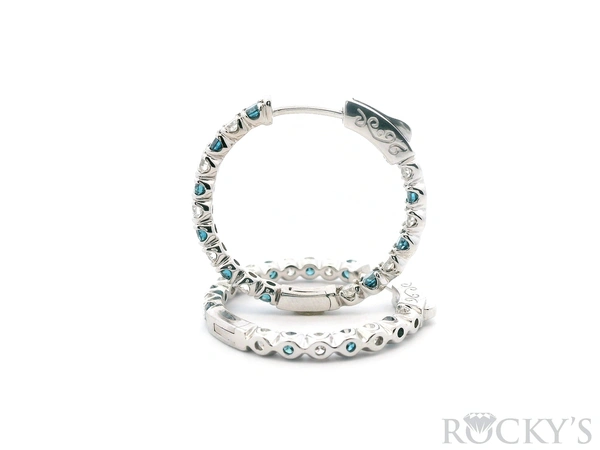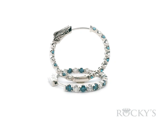14 Karat White Gold, Color Diamond Earrings with 1.53 ctw Round Blue Diamonds & 1.50 ctw Round G/H Color & SI Clarity White Diamonds