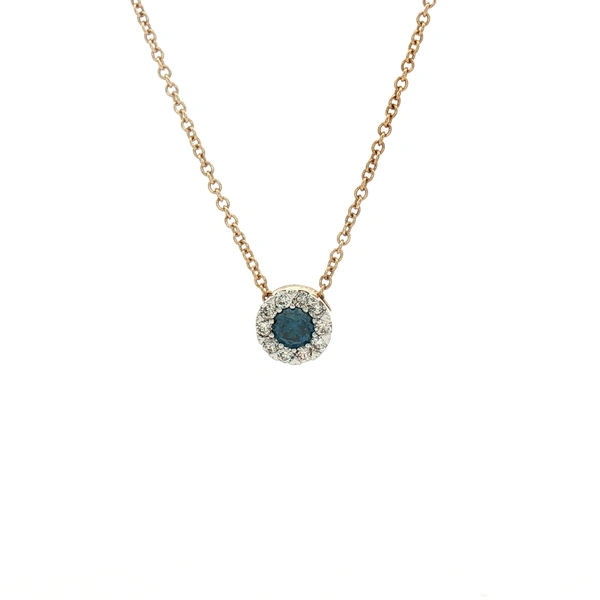 14 Karat Yellow Gold, Color Diamond Necklace With 0.27Tw Round Blue Diamonds And 0.18Tw Round G/H Color & SI Clarity White Diamonds (Blue Diamond Pendant - Chain Included)