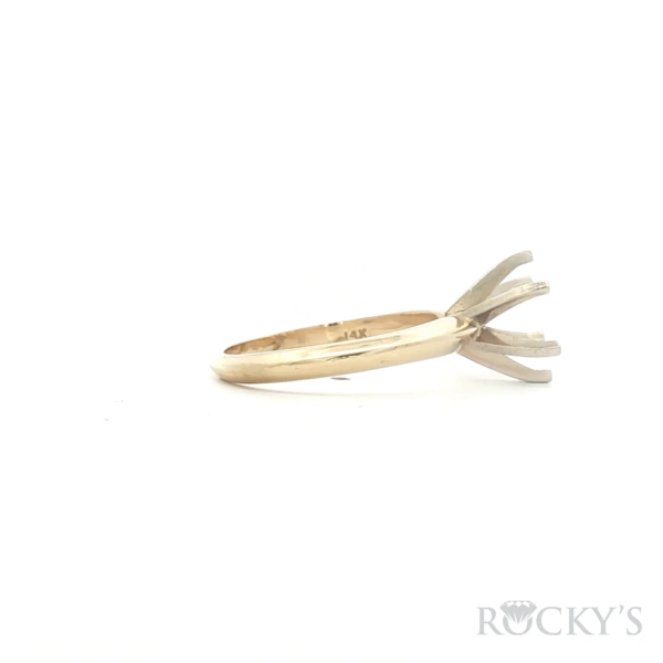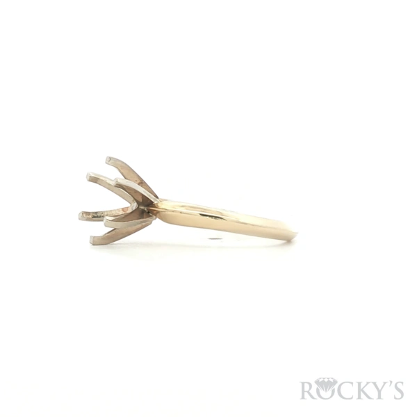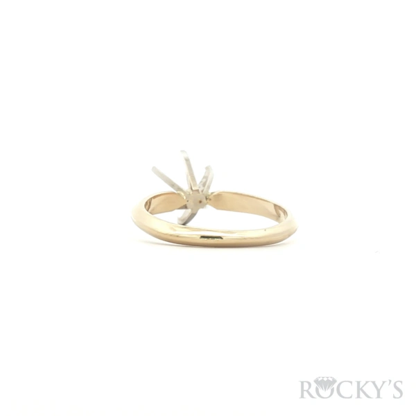 Yellow 14 Karat Semi Mount Ring for Round Cut Stone, 6 Prongs, Size 7, Weight 2.89