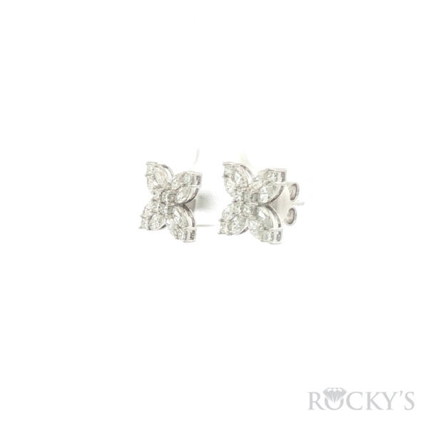 White 14 Karat Diamond Earrings With 1.40Tw Mix Shapes (Marquise and Princess Cut) G/H SI Diamonds