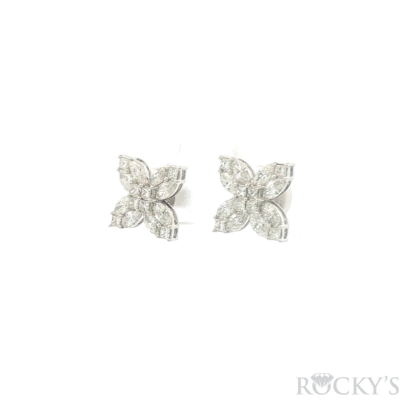 White 14 Karat Diamond Earrings With 1.23Tw Mix Shapes (Marquise and Princess Cut) G/H SI Diamonds