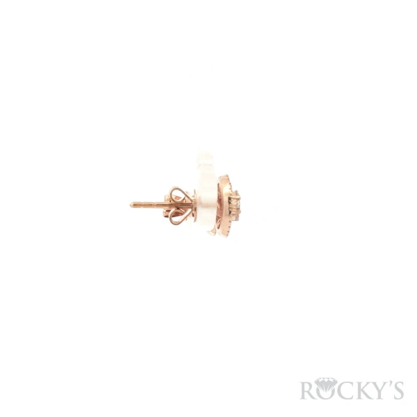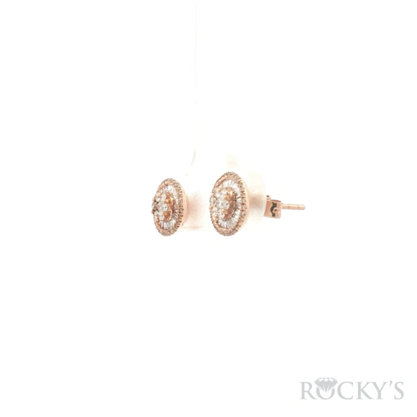 18 Karat Rose Gold Diamond Earrings With 74 / 0.267Tw Round G/H Color & SI Clarity Diamonds And 16 / 0.157Tw Tappered G/H Color & SI Clarity Diamonds