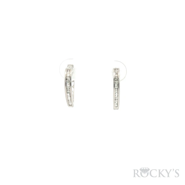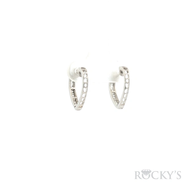 18 Karat White Gold Heart Hoop style Diamond Earrings With 0.181Tw Tappered G/H Color & SI Clarity Diamonds