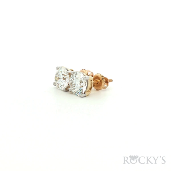Yellow 10 Karat Lab Grown Diamond Earrings Studs, With = 2.17CTwt Round E/F VS1 Lab Diamonds