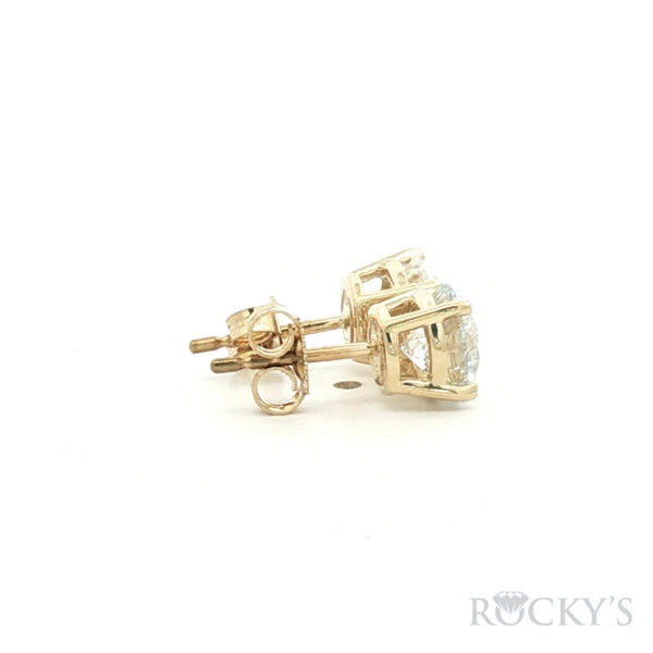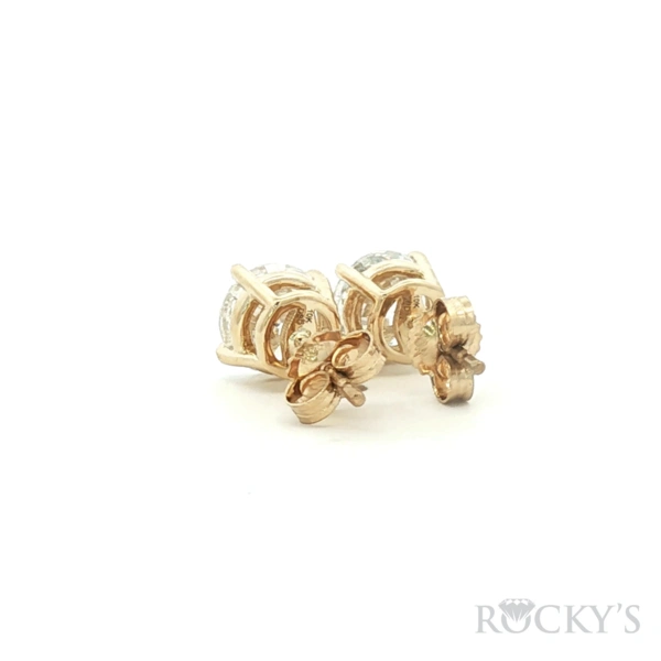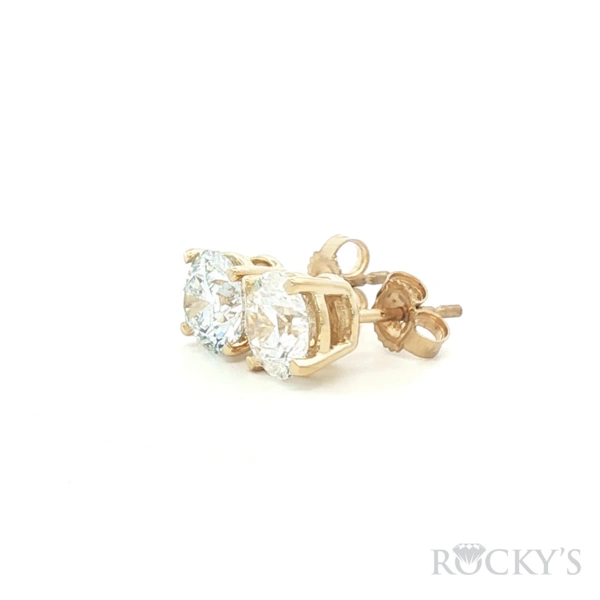 Yellow 10 Karat Stud Earrings With 2/1.50Twt Round F VS1 Lab Grown Diamonds, 4 Prong Basket setting - push Back earrings.