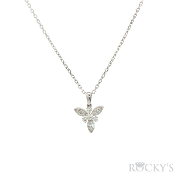 White 14k Diamond Pendant with 0.19Tw Round Shape Diamond and 0.24Tw Marquis e Cut Diamond