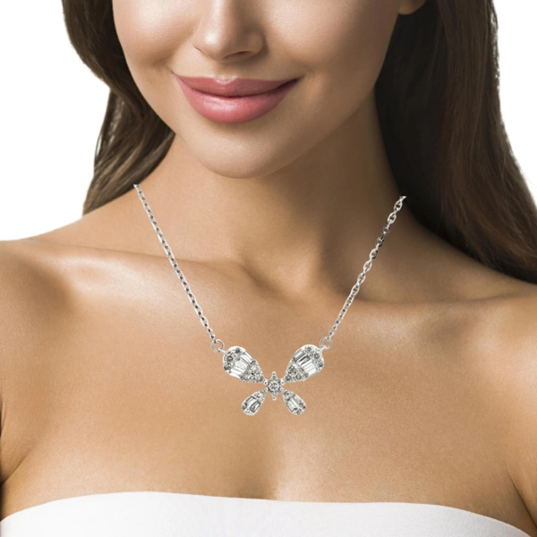 18 Karat White Gold Diamond Necklace With 21 / 0.117Tw Round G/H Color & SI clarity Diamonds And 12 / 0.094Tw Tappered G/H color & SI clarity Diamonds