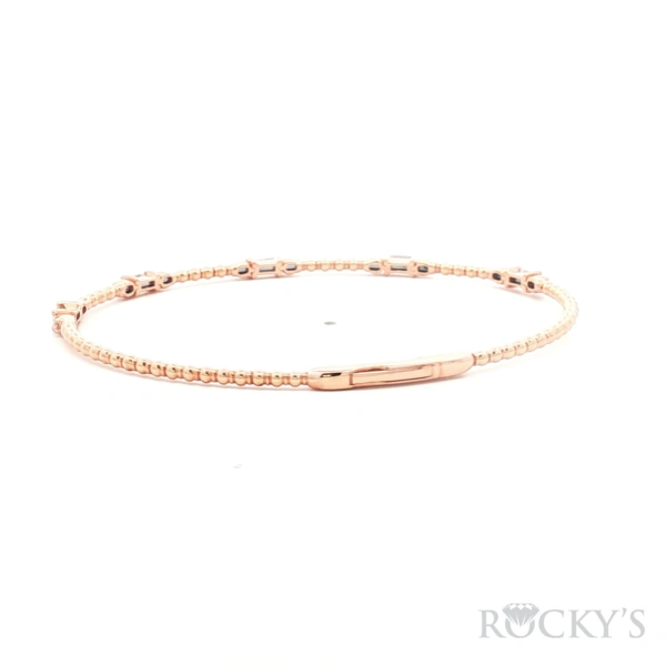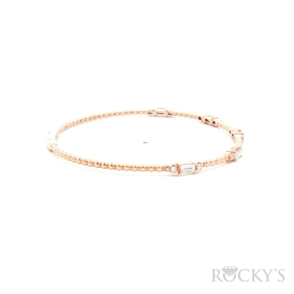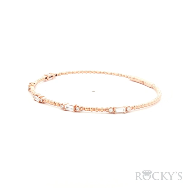 Rose 14 Karat Diamond Flexible bangle Bracelet 0.55TWT Baguette cut G/H SI white Diamonds & 0.15TWT Round cut G/H SI white Diamonds, Wrist Size: 6.75