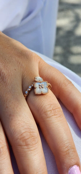 Rose 14k Flexible MOP & Diamond Ring with 0.26Tw Round Shape Diamond :Flexible