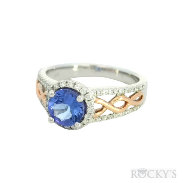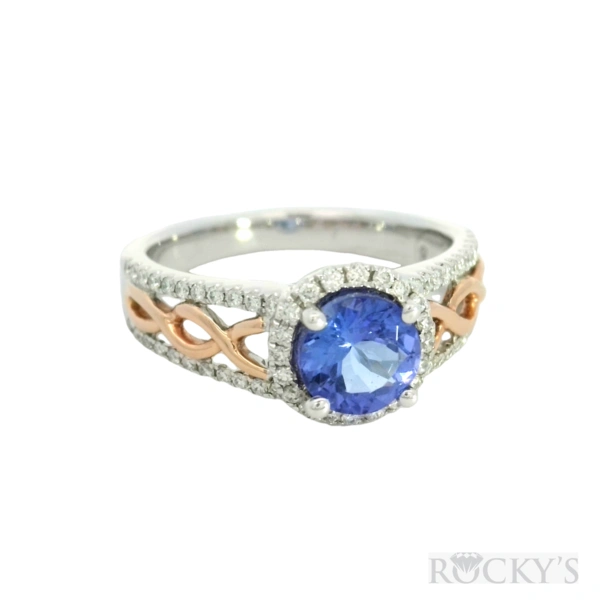 Two Tone 14k Tanzanite Ring with 0.85Tw Round Shape Tanzanite and 0.26Tw Rou nd Shape Diamond