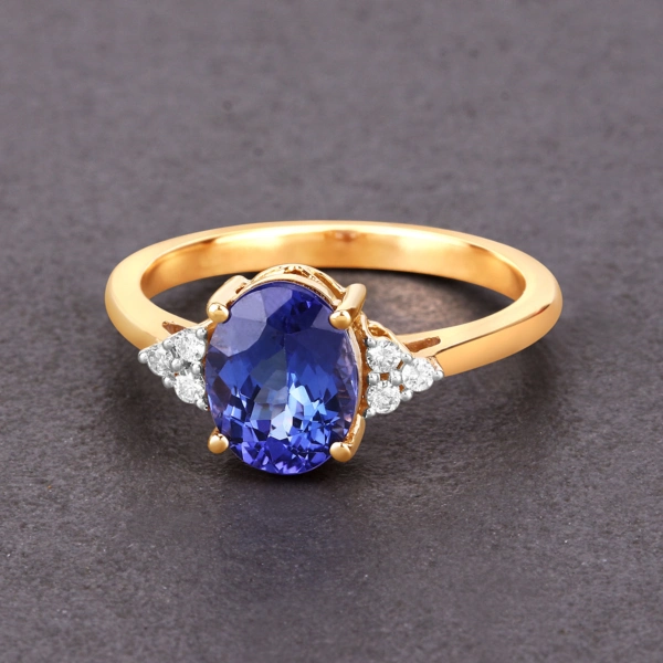 Yellow 14k Tanzanite Ring with 1.88Tw Oval Shape Tanzanite and 0.08Tw Round Shape Diamond