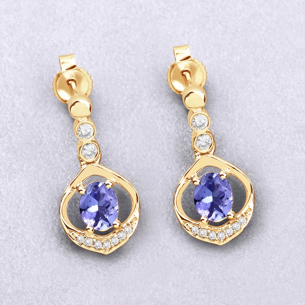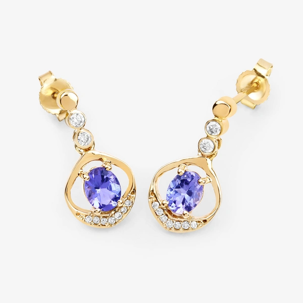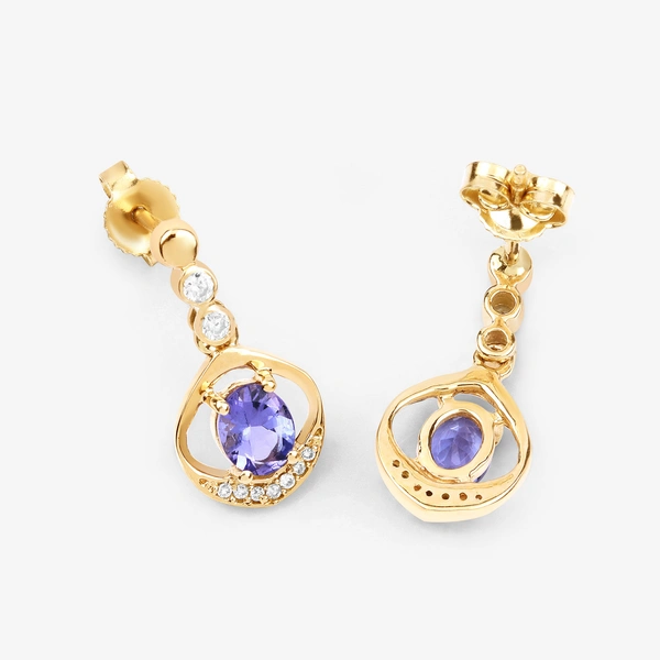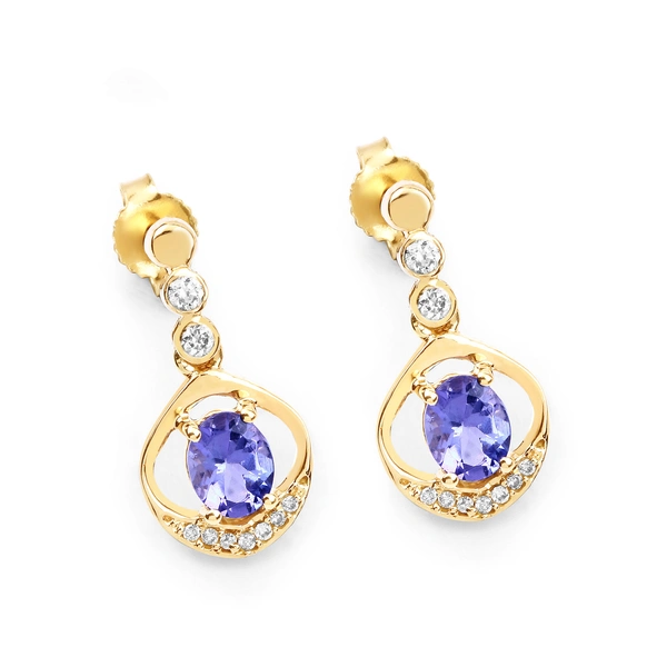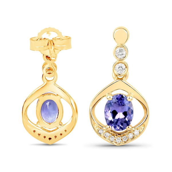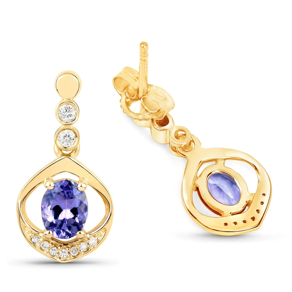 14kt Yellow Gold Earring with 0.66ctw Tanzanite Oval 5x4mm - 2Pcs + 0.10ctw Diamond White Round 1.50mm - 4Pcs ( I1/H-I ) + Diamond White Round 0.80mm - 14Pcs ( I1/H-I )