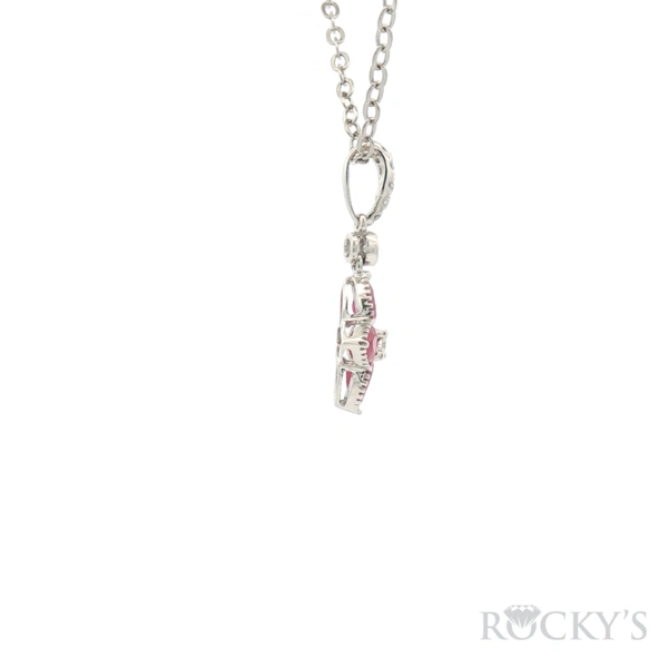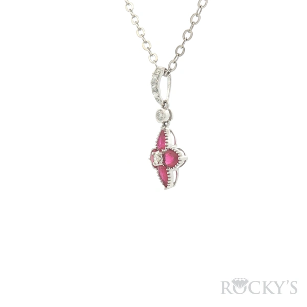 18 Karat White Gold Color Stone Pendant With 4 / 0.769Tw Pear Shaped Red Rubys And 7 /0.101Tw Round G/H Color & SI Clarity Diamonds (Chain Excluded)