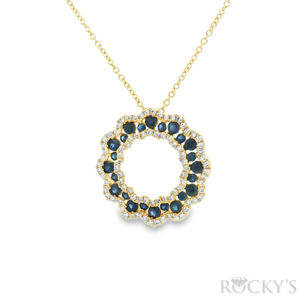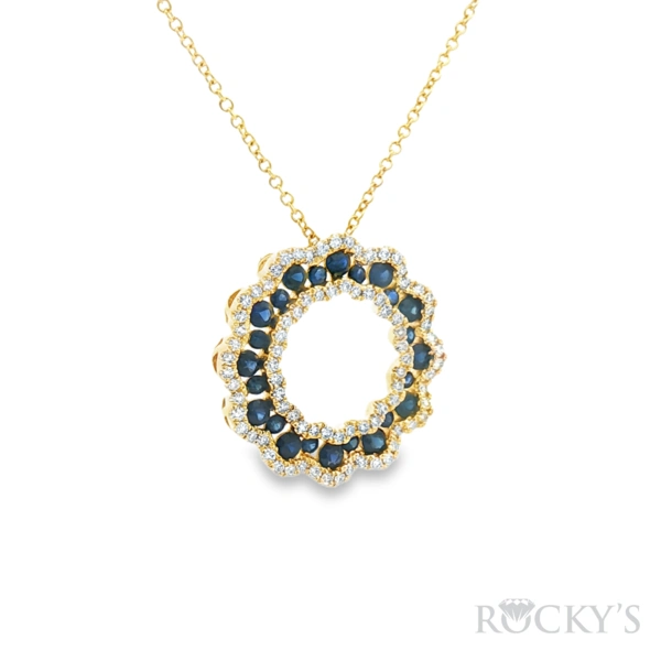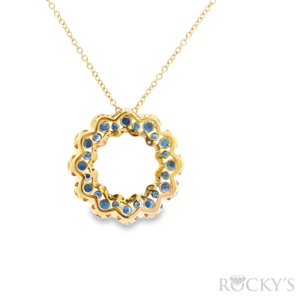14 Karat Yellow Gold Sapphire Necklace with 1.19TWT Round Cut Blue Sapphires