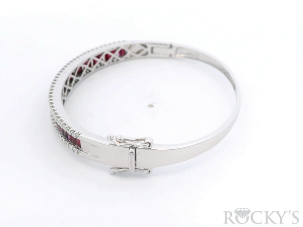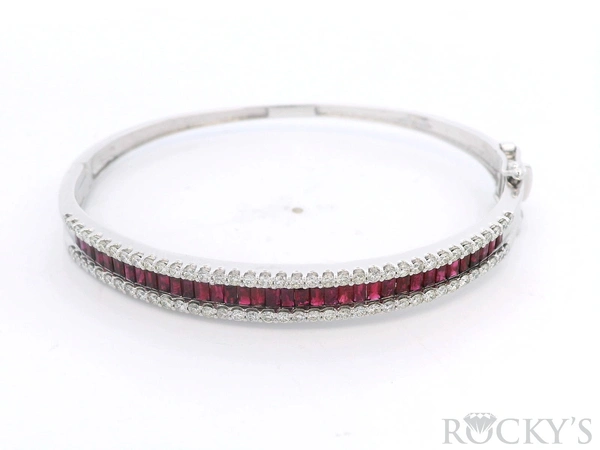 14 Karat white gold Bracelet With 3.20Ct Baguette Ruby And 1.35Ct Round Diamond with SI & GH Color & Clarity.