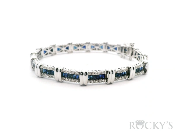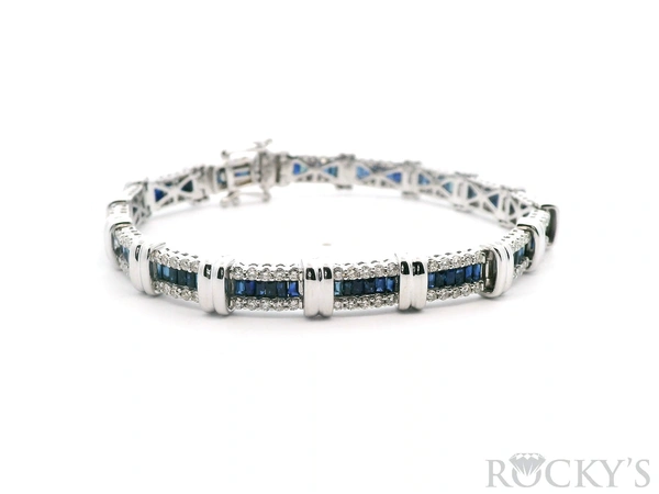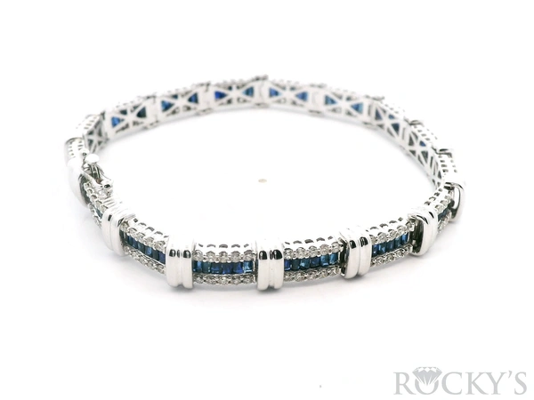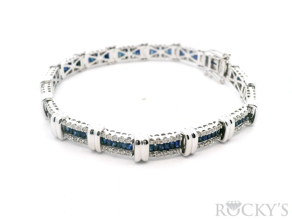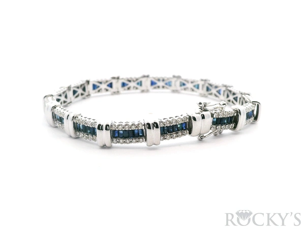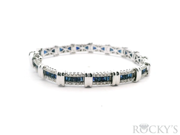 14 Karat white gold Sapphire Diamond Bracelet With 4.86Tw Baguette GH SI Sapphires And 2.36Tw Round GH SI Diamonds