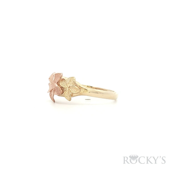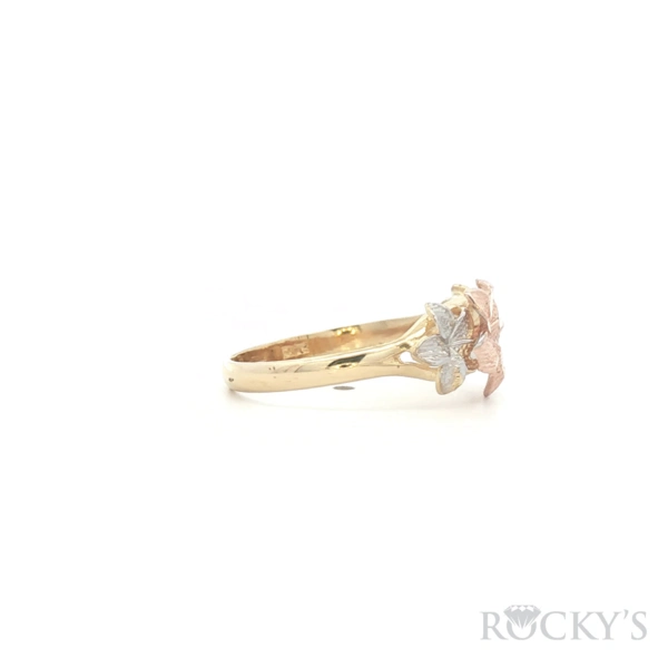 3 Tone 10k Fancy Flowers Ring, 1.71Gram weight, size 6.5, Womens Collection, Stackable Collection